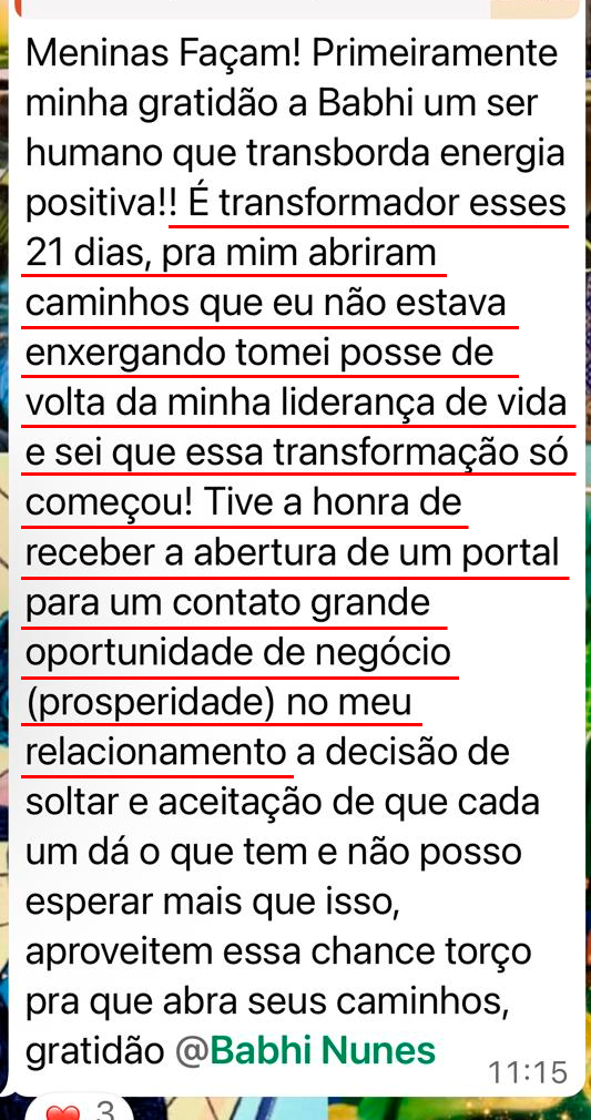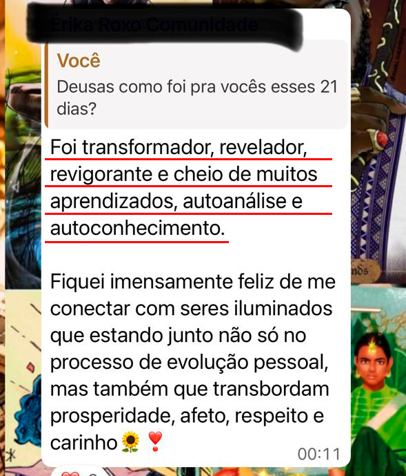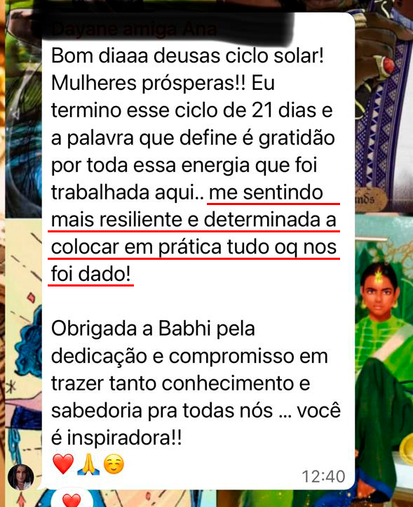 Você recebe em um grupo fechado um resumo do que foi trabalhado, com insights e orientações para sustentar a energia.